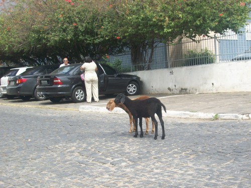 Estes dois carneiros pastaram no jardim da prefeitura, na manhã desta segunda-feira, mas foram ‘tocados‘ para a rua Maria Quitéria (lateral do forum), por funcionários da própria prefeitura. Alheios aos desacertos da administração, os nossos ilustres visitantes continuaram dando um ‘rolê’ pela cidade, sem serem molestados por ninguém.
