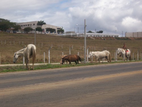 Já em frente à UESB, em plena rodovia, uma criança cuida dos cavalos, também alheio aos perigos que os burros e cavalos podem representar, quando estão no lugar errado. E o Derba ainda queima as pestanas com os barraqueiros da Azaléia… Quem entende essa gente?