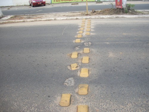 Uma prática antiga, que virou rotina em Itapetinga, é 'arrancar' quebra-molas. O ilícito é atribuído a alguns motoqueiros 'impacientes', que não querem perder tempo parando nos quebra-molas e redutores de velocidade. Segundo se comenta, os redutores são arrancados durante a madrugada. É preciso que o Poder Público fique atento e investigue, para identificar esses destruidores do patrimônio público e aplique as punições previstas em lei. Danificar ou destruir sinalização de trânsito é crime