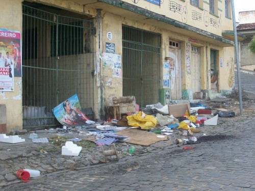 O ‘Ponto Certo’, parte da cidade onde se localizam as oficinas automotivas e lojas de autopeças, é degradado por natureza. Para contribuir ainda mais com as péssimas condições da área, este velho casarão que já serviu de hotel e posto de gasolina, está praticamente abandonado, servindo de depósito para todo tipo de tralhas, lixo e entulho. Neste feriadão de carnaval o cenário era estarrecedor, como demonstra a foto da nossa reportagem. Um “belo” cartão postal, bem no centro da cidade.