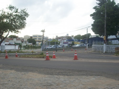 Há cerca de 2 meses, a Comutran efetuou mudanças no trevo em frente ao Derba, sinalizando 'provisoriamente' toda a área, com cones e fitas de sinalização. A ideia de mudar o trânsito naquela área é boa, mas é preciso que as obras de engenharia sejam feitas com rapidez, para que as modificações surtam resultado. Se ficar só no "provisório", acaba avacalhando. (Foto: Sudoeste Hoje)