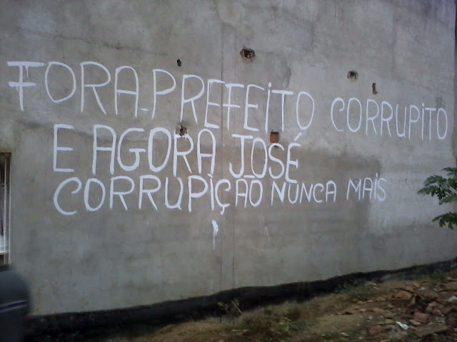 ITAPETINGA: Na tarde deste sábado 05/05/2012 o pré-candidato a prefeito Jorge Pantera (PSB) em visita ao bairro Américo Nogueira, junto com simpatizantes e a executiva do Partido Socialista Brasileiro, surpreendeu-se com uma aglomeração de populares observando um muro residencial, na rua Carmélio de Sá, onde havia uma pichação contra o prefeito José Carlos Moura.