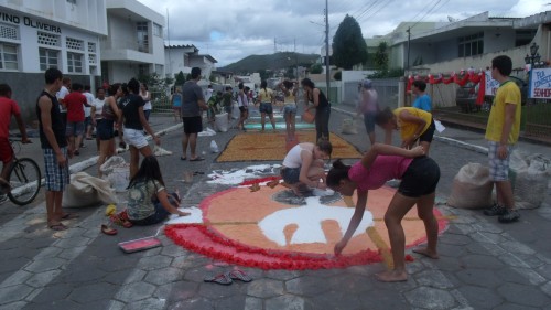 ITAPETINGA: Desde as primeiras horas da manhã desta quinta-feira (07), centenas de católicos ocuparam as principais ruas da cidade, para preparar a tradicional decoração para a procissão de Corpus Christi, que terá início a partir das 17h, partindo da Igreja Matriz de São José, com destino à Igreja de Nossa Senhora das Graças, na concha acústica.