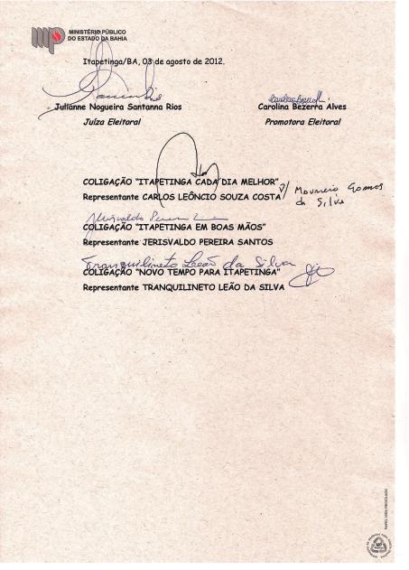 JUSTIÇA ELEITORAL, MINISTÉRIO PÚBLICO E COLIGAÇÕES FIRMAM ACORDO PARA ELEIÇÕES