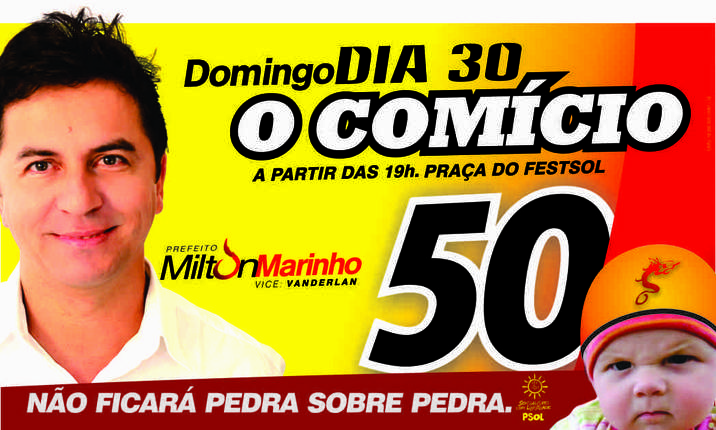 Apesar de convidado, mais uma vez o prefeito José Carlos Moura, candidato à reeleição pelo PT, não compareceu ao evento, alegando, por telefone, às 18h, que por questão de “foro íntimo”, não estaria presente. E, de novo, o PT sequer enviou o seu candidato a vice para representá-lo, assim como ambos não compareceram ao encontro com estudantes da Cooedita, ontem pela manhã, e sequer justificaram suas ausências.