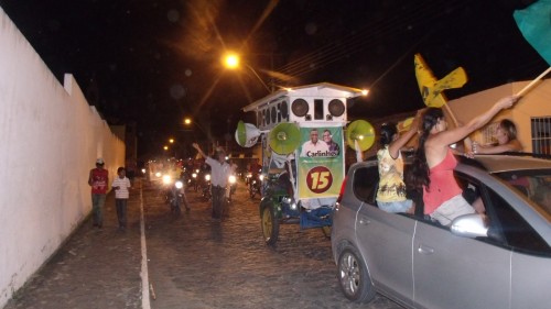 Depois de realizar um dos maiores comícios da história de Macarani, no último sábado, o prefeito Carlinhos, candidato à reeleição, realizou outro enorme evento, na noite desta sexta-feira, no bairro Benito Gama. Uma verdadeira multidão partiu do Comitê Central do 15, em direção ao Benito Gama, sendo saudada pelos moradores de Macarani, que saíram às portas de suas casas para manifestar apoio ao prefeito.