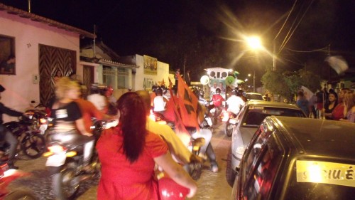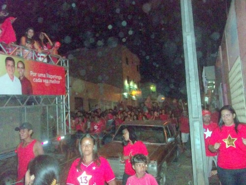 ITAPETINGA: Contrariando as expectativas dos seus adversários, o prefeito Zé Carlos realizou, neste sábado (8), a maior caminhada da história de Itapetinga (percurso de 10 km), arrastando os seus correligionários pelas ruas desertas da cidade. O ‘Sabadão 13’ , previsto para iniciar às 16h, só teve início por volta das 18:30h, dada a ‘enorme’ quantidade de militantes que compareceram ao evento. Tentando demonstrar animação, os petistas se esforçavam para reeditar o famoso ‘Mar Vermelho’ que levou o prefeito Zé Carlos à vitória, em 2008, mas não foi desta vez.