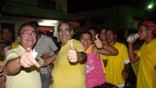 Marco Brito comemorou a vitória na praça, ao lado do povão