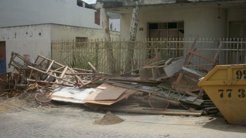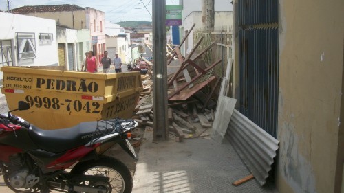 Há meses a população reclama dessa verdadeira falta de respeito para com o cidadão, e a prefeitura nada faz. Esse entulhão jogado em uma das ruas mais movimentadas do centro comercial de Itapetinga, a Benjamin Constant, já vai fazer um ano e ninguém tem coragem de notificar o proprietário da construção, por absoluto medo.