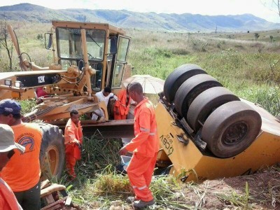 POTIRAGUÁ: OPERÁRIO FICA PRESO APÓS CAPOTAMENTO DE ROLO COMPRESSOR