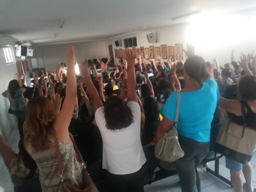 Em assembléia realizada nesta terça, no plenário da Câmara de Vereadores, os educadores da rede municipal decidiram entrar em estado de greve e paralisarem nos dias 04 e 05 de junho (quarta e quinta-feira), em repúdio à lamentável proposta de reajuste da prefeitura, sem retroativo a janeiro, num enorme desrespeito a Lei do Piso, no seu Art. 5º, feita por parte do prefeito Zé Carlos e da secretária de educação Sibele Neris, que relutam em dialogar e atender as justas reivindicações do educadores municipais.