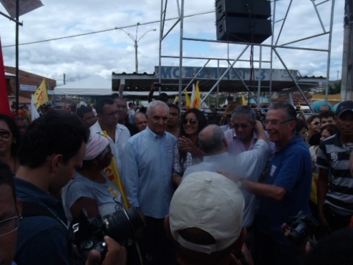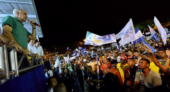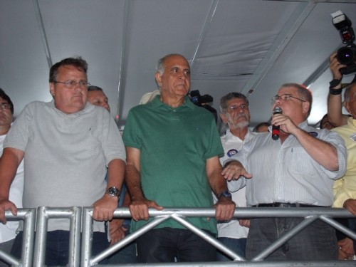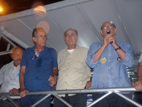 “ADVERSÁRIOS HISTÓRICOS SOBEM NO PALANQUE DE SOUTO: Depois de percorrer sete municípios em carreata, os candidatos Paulo Souto, governador, Joaci Góes, vice, e Geddel Vieira Lima, senador, pelo Sudoeste Baiano a agenda oposicionista culminou num comício em Itapetinga, na noite de ontem (30). Pela primeira vez os adversários políticos José Otávio (DEM) e Michel Hage (PMDB), ex-prefeitos da cidade, subiram no mesmo palanque e declararam apoiar a chapa da coligação “Unidos pela Bahia”. “Não temos que olhar para questões pessoais neste momento em que a Bahia pede a nossa união em torno de Paulo Souto e Geddel para a construção de um futuro melhor”, afirmou Michel Hagge. “Se antes nos digladiávamos politicamente pelo bem de Itapetinga, hoje estamos selando um acordo pela volta do desenvolvimento de nosso estado, que parou nos últimos tempos do PT”, reiterou José Otávio. Para Paulo Souto, que prometeu, se eleito, atrair novas indústrias para Itapetinga, a união dos dois adversários históricos, Michel Hage e José Otávio, engrandece a política. “A política se faz pelo embate de ideias, mas também pela união em prol de interesses maiores, que são o futuro de Itapetinga e da Bahia”, disse Souto. Geddel citou o médium Chico Xavier em sua avaliação do momento histórico: “Muitas vezes não podemos voltar atrás para fazer um novo começo. Mas podemos fazer um novo fim. Viva Itapetinga. Viva a Bahia!”
