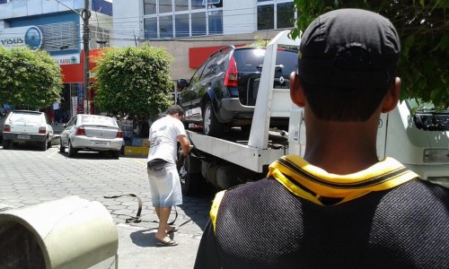 Um veículo da marca Renault, placa policial de Salvador, foi multado e guinchado pela Comutran, na manhã desta segunda-feira, na Praça Augusto de Carvalho, no centro de Itapetinga.