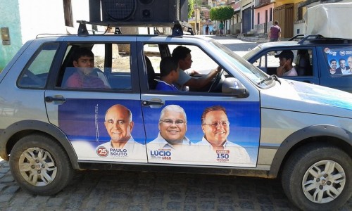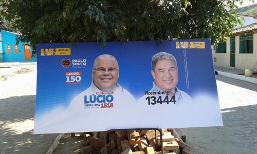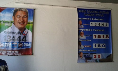 Na manhã desta terça-feira, a reportagem do Sudoeste Hoje foi a Caatiba e constatou a existência de vasta propaganda de Rosemberg, ao lado de Paulo Souto, Geddel, Lúcio e Aécio Neves, em placas e carro de som.