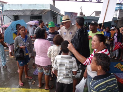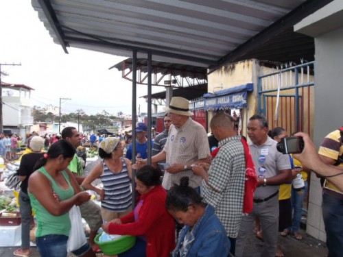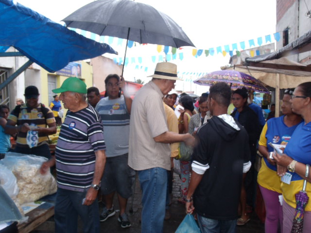 Mesmo debaixo da chuva fina que caiu durante a visita, os dois líderes não arredaram pé e continuaram a caminhada pela feira e ruas adjacentes, sendo saudados com carinho e respeito pelos feirantes e populares.