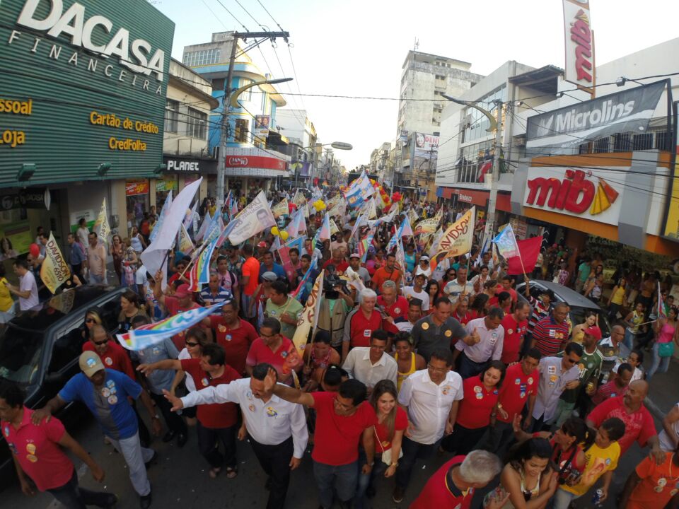 O candidato a deputado federal Davidson Magalhães, do PCdoB, reuniu cerca de 8 mil pessoas em uma caminhada que parou Itabuna na tarde desta quinta-feira (2). A mobilização começou no Jardim do Ó, percorreu toda a Avenida do Cinquentenário e a Juracy Magalhães, terminando com um ato público na praça do bairro de Fátima.