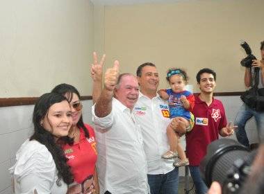 O candidato a governador Rui Costa (PT) votou às 11h no Colégio Duque de Caxias, na Liberdade. A zona eleitoral estava bastante cheia, o que dificultou um pouco a chegada do petista à sua seção. Acompanhado do candidato a vice-governador, João Leão (PP), de alguns candidatos a deputados e de sua família, Rui votou com sua filha caçula, Marina, de 1 ano e 5 meses, no colo. “A pesquisa demorou para perceber o que a gente via nas ruas. A gente já via o crescimento que se mantinha em todos os lugares da Bahia”, disse o candidato sobre a última pesquisa Ibope, divulgada neste sábado (4). Mesmo em cidades em que há perspectiva de vitória do candidato Paulo Souto (DEM), ele acredita que na vitória. BN