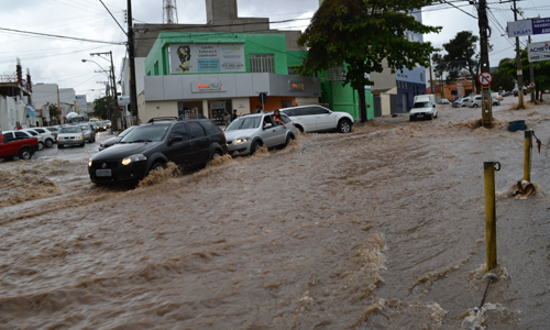 TEMPORAL INUNDA CONQUISTA E ARRASTA CARROS NO CENTRO DA CIDADE
