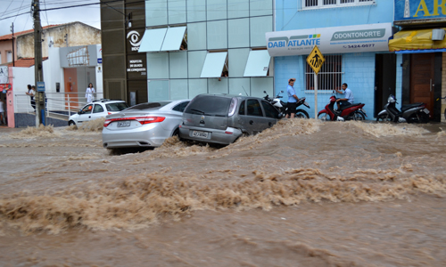 Mesmo com o pouco tempo de chuva, uma forte enxurrada foi formada nas partes entrais da cidade. Como é possível ver no registro da reportagem, a água encobriu veículos e carregaram os carros. O local é conhecido pela grande concentração de água durante as chuvas, mas uma enxurrada dessa proporção, nunca foi vista, afirmaram os comerciantes locais. Informações Blog da Resenha Geral
