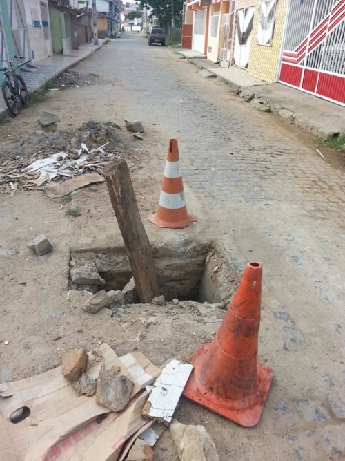 Na Avenida da Saudade, uma boca de lobo sem tampa vem causando transtornos à população, há mais de 6 meses, mas o administrador do distrito diz que não faz nada porque “falta cimento”.