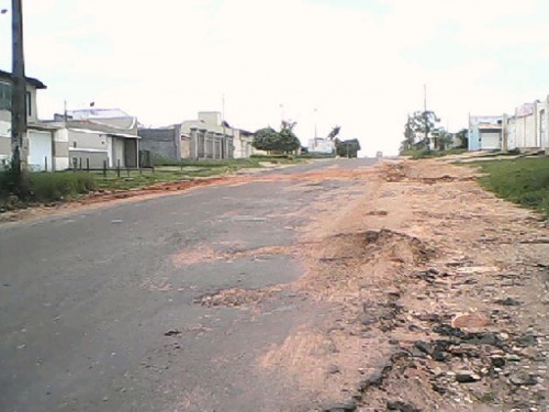 Além da pista esburacada e toda remendada, não existe acostamento na avenida, o que leva pedestres e ciclistas a transitarem no meio da perigosa via pública, correndo riscos de atropelamento.