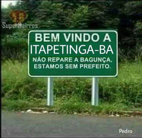 Neste post acima, a placa na rodovia adverte que a cidade não tem prefeito e até pede desculpas. Uma verdadeira injustiça para um homem tão dedicado e trabalhador, vocês não acham?