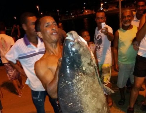 Para surpresa de todos, um enorme tambaqui acabou sendo fisgado por um morador conhecido por “Junior”, façanha que logo ganhou as redes sociais, onde as fotos foram postadas.