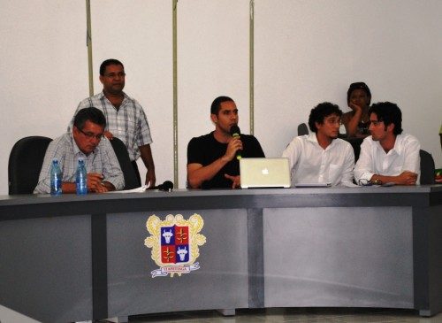 Para buscar informações a respeito da falta de água no distrito de Bandeira do Colônia, um grupo de vereadores de Itapetinga-BA participou hoje (7) de uma reunião com o diretor do Serviço de Água e Esgoto (SAAE) de Itororó, Virginio Figueiredo, visto que o município vizinho administra o abastecimento do distrito. O presidente da Câmara Municipal de Itapetinga, Eliomar Barreira/Tarugão (PMDB), Márcio Piu (PSC), Gilmar Piritiba (PSD) e Alberto Policial (PP) também visitaram a estação de captação de água.