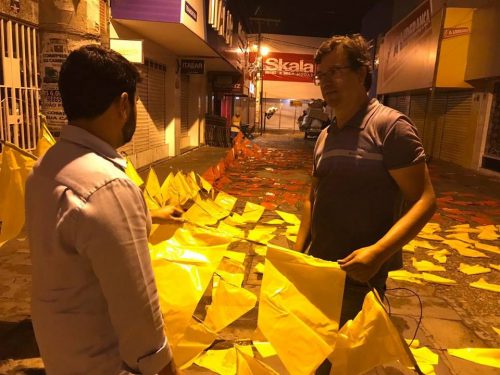 A fixação das bandeirolas começou hoje, na Alameda Rui Barbosa, através de uma parceria entre a prefeitura e a CDL.