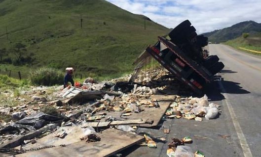 CARRETA COM PRODUTOS DA VALEDOURADO TOMBA NO MARÇAL E CARGA É SAQUEADA