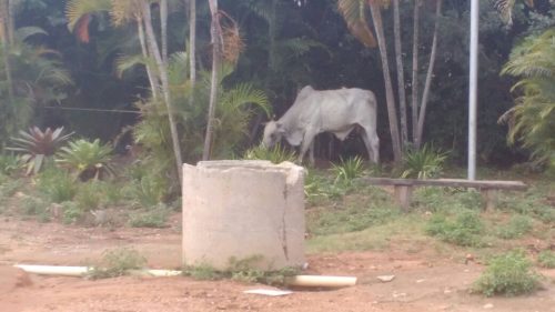 Um boi que escapou do Parque de Exposições Teopompo de Almeida, onde ocorre a 52ª Exposição Agropecuária Nacional, e invadiu a área verde da Biblioteca Municipal José de Sá Nunes que fica na avenida Jonas Hortélio, bairro Recreio.