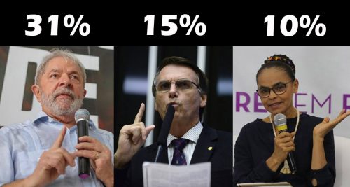 INELEGÍVEL, LULA LIDERA COM 31%, BOLSONARO TEM 15% E MARINA 10%
