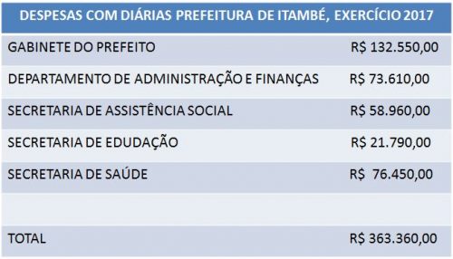 ITAMBÉ: GASTOS EXAGERADOS COM DIÁRIAS COMPROMETEM LISURA DA GESTÃO MUNICIPAL
