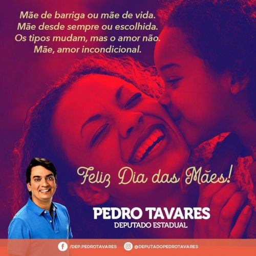 Mais uma vez o atuante deputado Pedro Tavares não deixou passar em branco a data comemorativa ao Dia das Mães, postando a sua homenagem nas redes sociais e imprensa de toda a Bahia.