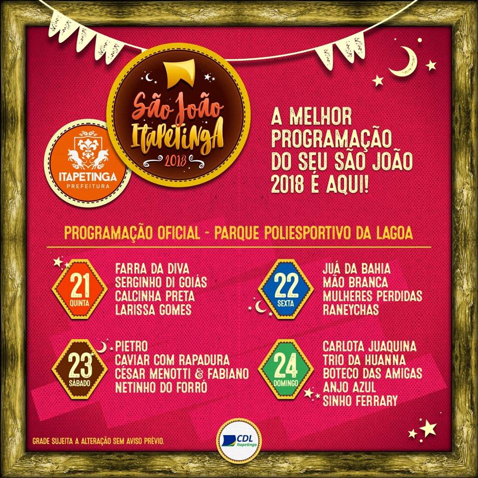 “Só vamos conseguir fazer um São João forte com o apoio da sociedade de Itapetinga. Esse apoio marca o diferencial que queremos dar a essa festa”, falou o prefeito. O forró já começa na próxima sexta-feira, 08, com o Forró dos Bairros, na Vila Riachão. E entre os dias 21 e 24, todos os itapetinguenses e visitantes se encontram num grande arraiá montado no Parque da Lagoa.
