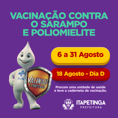 Atenção pais e responsáveis: devem se vacinar todas as crianças de 1 a 4 anos de idade. Leve sua caderneta de vacinação e participe dessa campanha. Prefeitura de Itapetinga levando saúde para sua população!