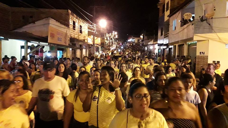 Conhecida como ‘Nação Gabiraba’, uma verdadeira avalanche amarela seguiu em caminhada pela Avenida Gerson de Oliveira, num percurso de mais de 1 km, até o palanque armado ao lado do Ginásio de Esportes, onde os candidatos fizeram seus discursos.
