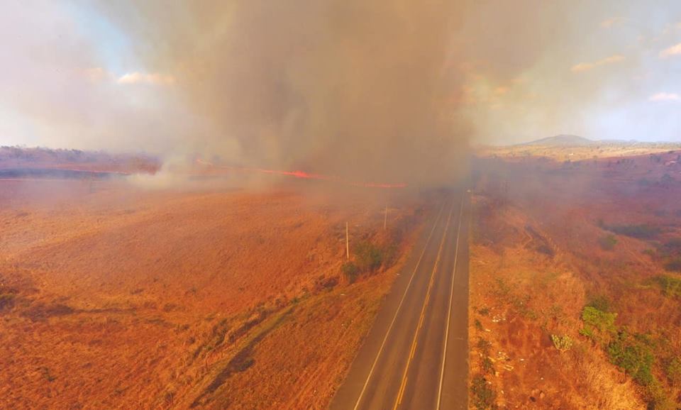 Imagens impressionantes de uma queimada em uma propriedade rural às margens da rodovia BA-263, entre Itapetinga e Itororó, chocaram toda a região, dado o poder devastador das chamas que devoram a pastagem da fazenda e uma pequena área remanescente da Mata Atlântica.
