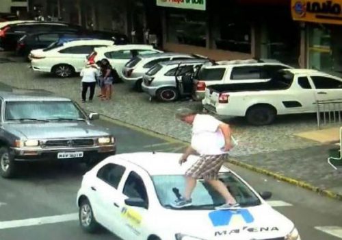 VEREADOR SOBE E ANDA EM CAPÔ DE CARRO PARADO EM FAIXA DE PEDESTRE; VEJA VÍDEO