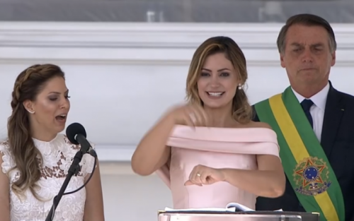 A nova primeira-dama do Brasil, Michelle Bolsonaro, realizou o primeiro discurso com o título de forma inédita: usando a língua de sinais. Enquanto a esposa do presidente Jair Bolsonaro (PSL) discursava em Libras uma intérprete traduzia as palavras dela.