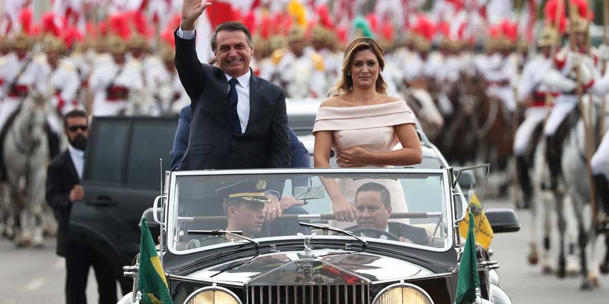 Jair Bolsonaro (PSL) foi empossado como presidente do Brasil na tarde desta terça-feira, 1º de janeiro de 2019, em cerimônia realizada no Congresso Nacional. O rito de começou às 14h45, com o desfile do presidente eleito e sua mulher, Michelle Bolsonaro, da Catedral Metropolitana de Brasília para o Congresso Nacional, em carro aberto com o tradicional Rolls Royce.