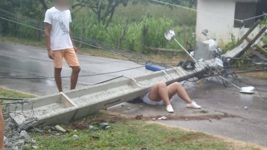 MULHER FICA FERIDA AO SER ATINGIDA POR POSTE DERRUBADO POR CARRO NO RIO
