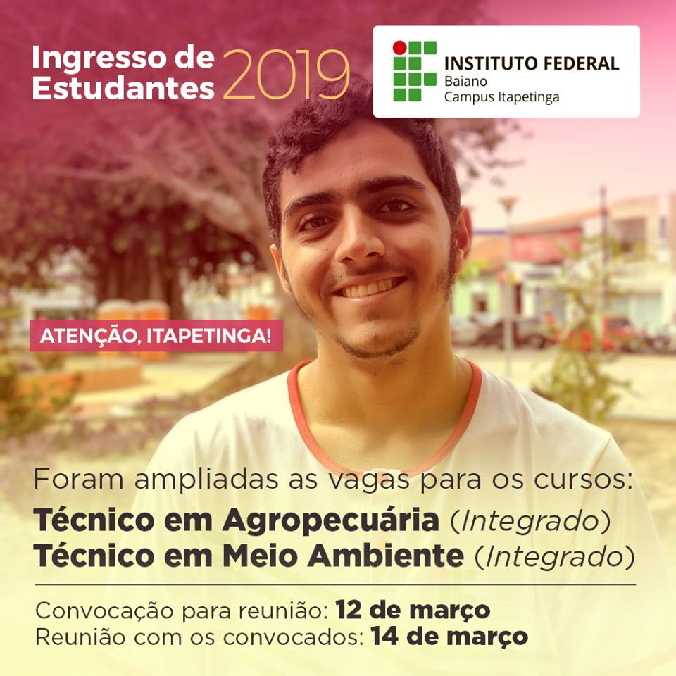 ITAPETINGA: IF BAIANO CONVOCA CANDIDATOS EM LISTA DE ESPERA PARA 2019