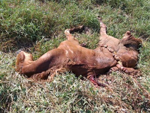 O animal morreu destroçado pelo impacto do carro, mas os 4 passageiros do carro escaparam sem ferimentos graves.