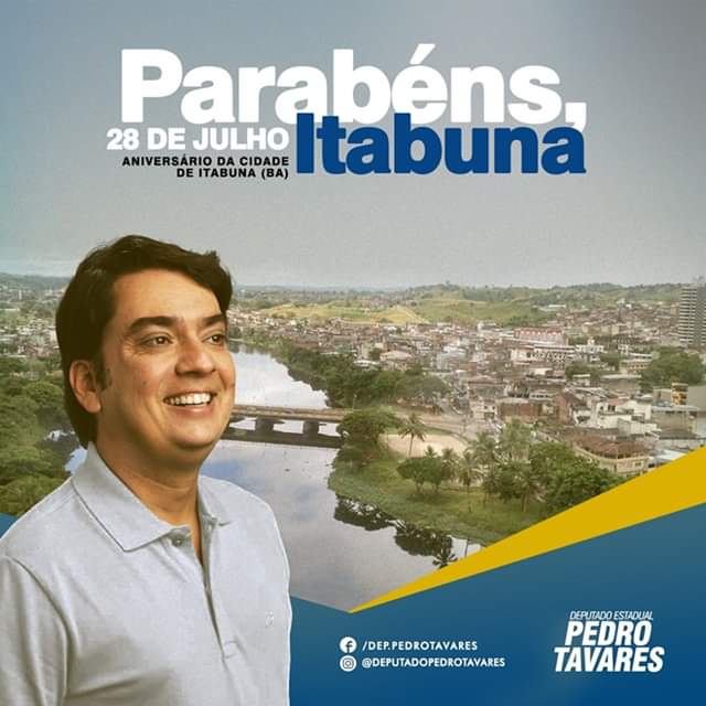 Quero deixar um abraço a todos os amigos e amigas de Itabuna, na figura do atual presidente da Câmara, Ricardo Xavier e de toda a sua família. Tenho a honra de representar essa cidade querida, no Parlamento Estadual, desde o meu primeiro mandato. Parabéns Itabuna! Desejo muita saúde, paz e prosperidade a toda a população! Estamos Juntos!