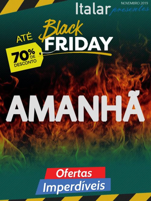 A Italar preparou uma grande promoção no Black Friday para você! Nesta sexta-feira (29), você não pode perder as super ofertas com produtos com até 70%. de descontos. Nas compras acima de R$ 100,00 reais, você ganha um delicioso sanduíche da Subway. A loja funcionará das 08h00 às 18h00. Antes de comprar passe na Italar nesse Black Friday com Promoções imperdíveis !