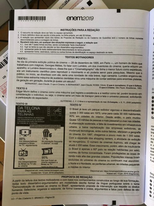 INEP CONFIRMA VERACIDADE DE FOTO DA PROVA DO ENEM 2019 QUE CIRCULA NA INTERNET