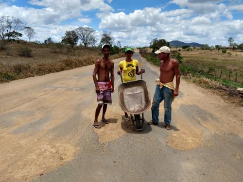 Tapa-buracos continua sendo realizado por três moradores da região, por alguns trocados doados por motoristas.