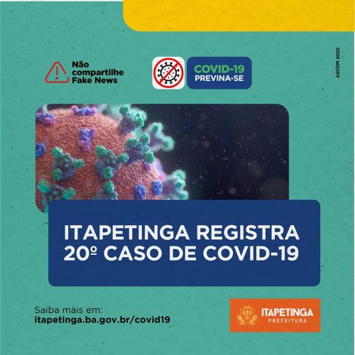 ITAPETINGA REGISTRA 20º CASO DA COVID-19