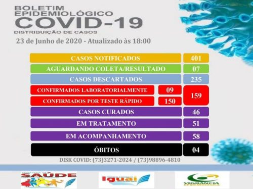 Um novo boletim da Secretaria de Saúde de Iguaí trouxe nesta terça-feira os novos números da Covid-19 no município localizado na micro-região de Itapetinga.